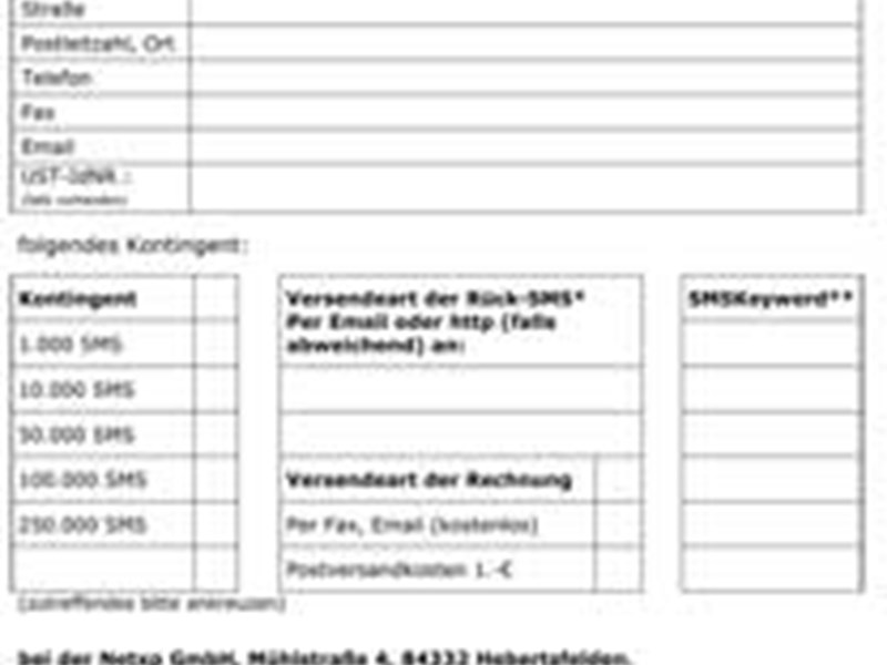 Fax / Brief Bestellung