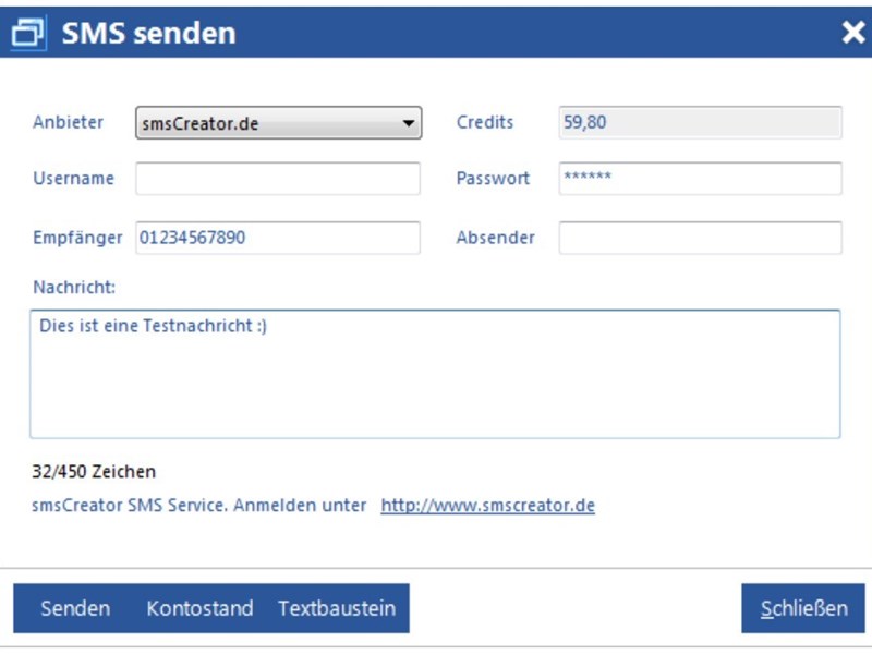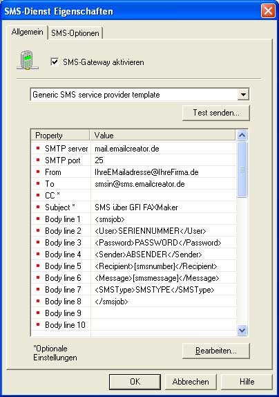 Mit dem Faxmaker von GFI © können SMS versendet werden. Als Versendeplattform kann Ihnen hier der SMSCreator zur Verfügung stehen.