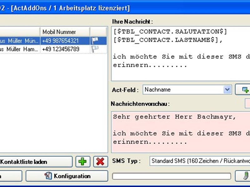 SMS Plugin für die CRM Software ACT! 2010 von Sage.