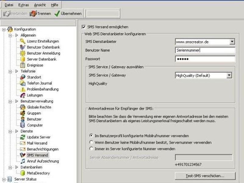 CapiCall - Ihr PC als Telefonzentrale. Mit der umfangreichen Software von Shamrock können Sie auch SMS mit den SMSCreator senden.